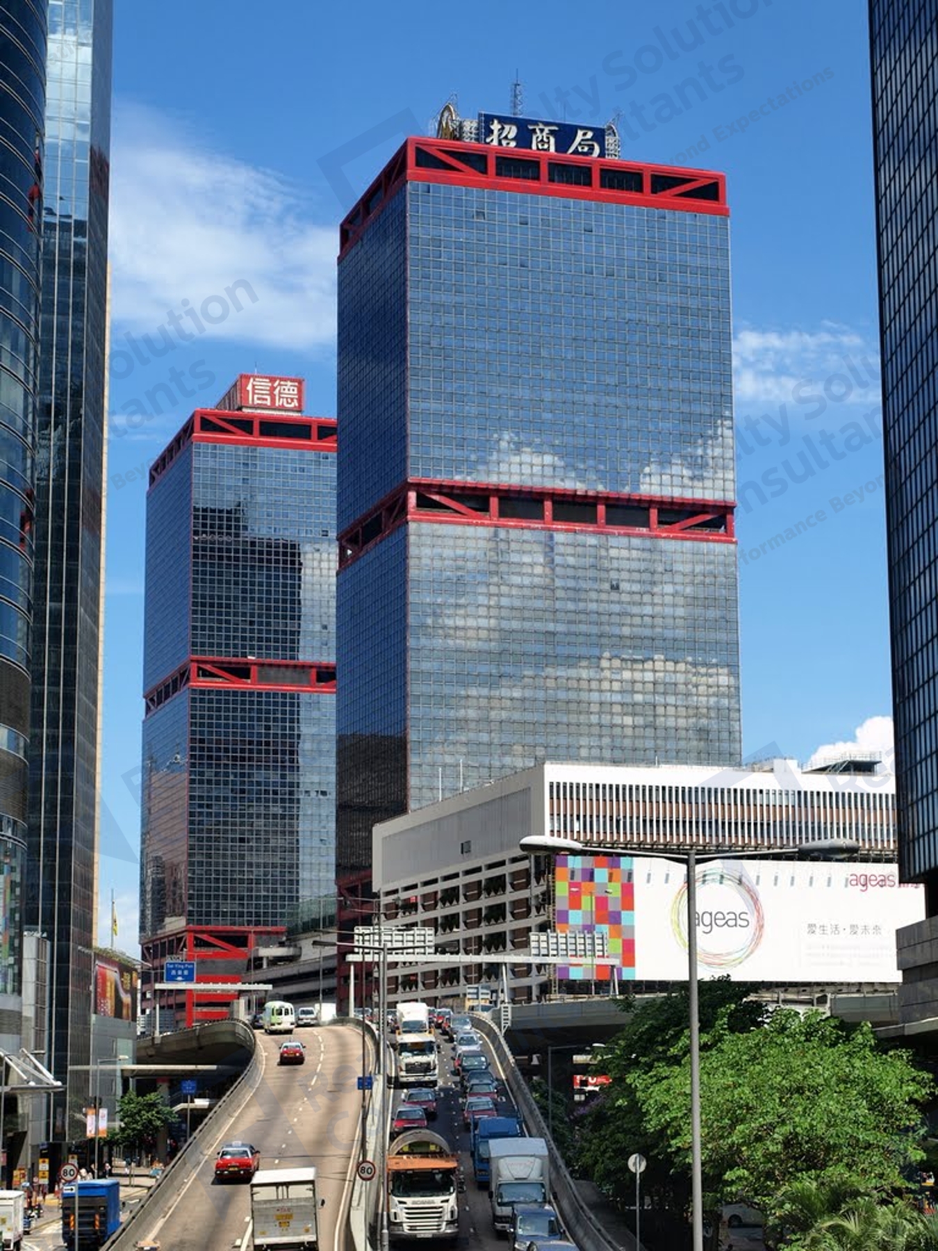 信德中心-招商大廈位於上環幹諾道中200號,為本港甲級臨海而建指標商厦,飽覽開揚的維港景致。地理位置優越,位於中上環商業核心區,毗鄰上環港鐵站和香港/中國/澳門交通樞紐港澳客輪碼頭。屋頂上設有停機場及提供"空中快線直升機"服務,距澳門僅15分鐘。